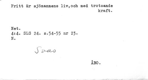 //// Fritt är sjömannens liv, och med. trotsande //// kraft. //// Net. //// 4:4- SLS 24. s.54-55 nr 23. //// N. ////