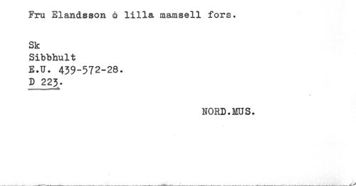 //// Fru ElancLsson o lilla mamsell fors. //// Sk //// Sibbhult //// E.U. 439-572-28. //// D 22^. //// NORD.HUS. ////
