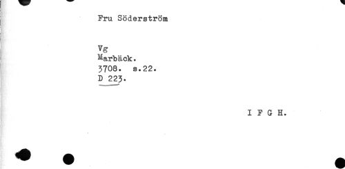 //// Hy //// Fru Söderström //// Vg //// Marbäck. //// 3708. s.22. //// D 223. //// I F G H. ////