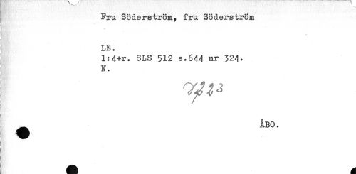 //// Fru Söderström, fru Söderström //// { //// LE. //// l:4+r. SLS 512 s.644 nr 324. //// N. //// ! //// ÅBO. //// I //// ) ////