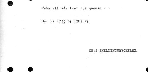 //// Från all vår lust och gamman ... //// Se: Zz 1755 b; 1787 k; //// * //// ) ' * //// KB:S SKILLINGTRYCKSREG. ////