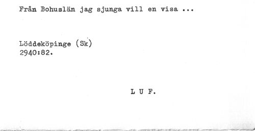 //// Från Bohuslän jag sjunga vill en visa ... //// \ //// Löddeköpinge (Sk) //// 2940:82. //// L U F. ////