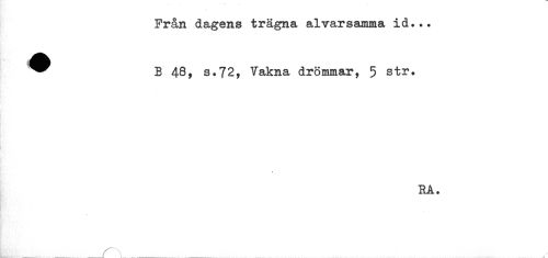 //// Från dagens trägna alvarsamma id... //// ^^^^ B 48, s.72, Vakna drömmar, 5 str. //// H: //// RA. //// ....f 1... ... .... .....^ ////