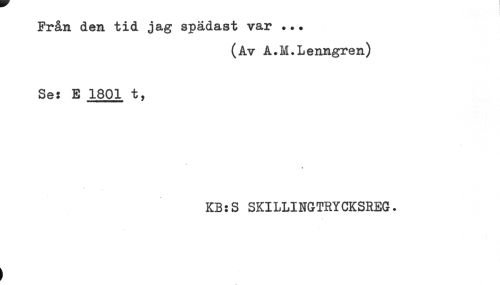 //// Från den tid jag spädast var ... //// (Av A.M.Lenngren) //// Se: E 1801 t, //// * //// KB:S SKILLINGTRYCKSREG. ////