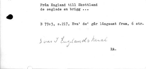 //// Från England till Skottland //// de seglade en brigg ... //// B 79:3, S.217, Hva' de' går långsamt fram, 6 str. //// J , . ' ^t^J ' ^ ' //// RA. //// ....n___ .. .. . //// /