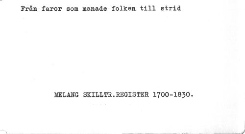 //// Från faror som manade folken till strid //// MELANG SKILLTR.REGISTER 1700-1830. ////