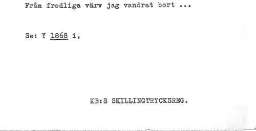 //// Från fredliga varv jag vandrat bort ... //// Se: Y 1868 i, //// KB:S SKILLINGTRYCKSREG. //// _____ _ ^ ___ ___ ___ ____ ____, _ ___ ____ ____^ ////