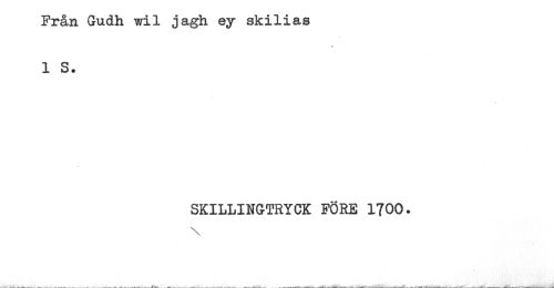 //// Från Gudh wil jagh ey skilias //// 1 s. //// SKILLINGTRYCK FÖRE 1700. //// \ ////