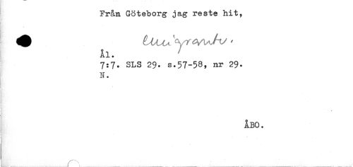 //// Från Göteborg jag reste hit, //// Ål. //// 7:7. SLS 29. s.57-58, nr 29. //// N. //// t //// * //// ÅBO. //// < ////