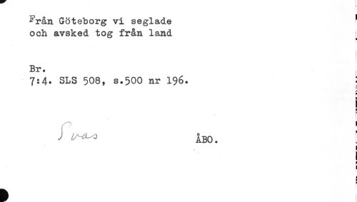 //// ^'rån Göteborg vi seglade * //// och avsked tog från land //// Br. //// 7:4. SLS 508, s.500 nr 196. ; //// C //// i //// a //// f //// r ! //// ^ ^^ ÅBO. ^ //// ! //// 1 ////