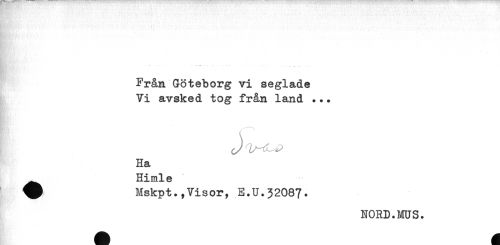 //// Från Göteborg vi seglade //// Vi avsked tog från land ... //// Ha //// Himle //// ^ Mskpt.,Visor, E.U.32087. //// NORD.MUS. ////
