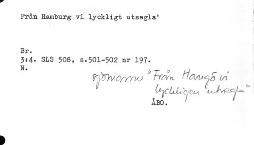 //// Från Hamburg vi lyckligt utsegla' //// \ //// t //// Br. //// 3:4. SLS 508, s.501-502 nr 197. //// ÅBO. ////