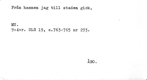 //// Från hamnen jag till staden gick, //// MU. //// 9:4+r. SLS 19, s.763-765 nr 293. //// ÅBO. //// \..... ....... ...- ... ....... ... ...... ////