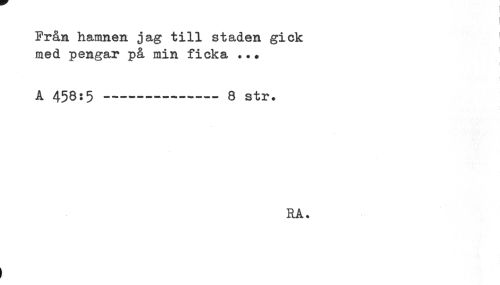 //// Från hamnen jag till staden gick ' //// med pengar på min ficka ... //// A 450:5 ----- 8 str. //// RA. ////