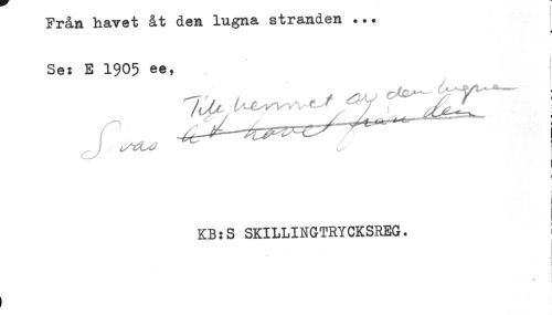 //// Från havet åt den lugna stranden ... //// Se: E 1905 ee, //// ) //// i //// KB:S SKILLINGTRYCKSREG. ////