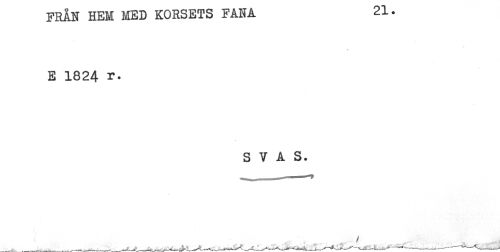 //// FRÅN HEM MED KORSETS FANA 21. //// E 1824 r. //// S V A S. ////