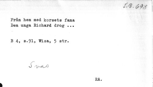 //// Från hem med korsets fana //// Den unga Richard drog ... //// < //// B 4? s.91, Wisa, 5 str. //// iJ lA^L^O //// RA. //// h ////