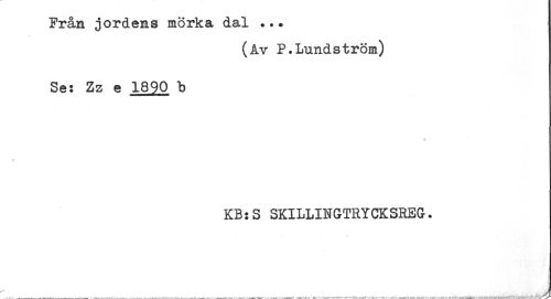 //// Från jordens mörka dal ... //// (Av P.Lundström) //// Se: Zz e 1890 b //// t //// KB:S SKILLINGTRYCKSREG. //// ^ _____ ____ ___ _ < ^ ____. . f ////