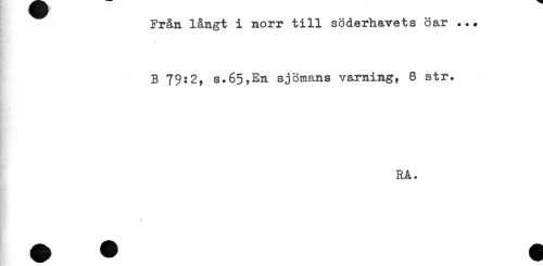 //// Rf t-' //// Från långt i norr till söderhavets öar ... //// B 79:2, s.65yEn sjömans varning, 8 str. //// RA. ////