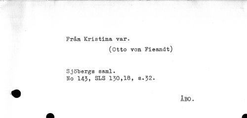//// Från Kristina var. //// (Otto von Fieandt) //// Sjöbergs saml. //// No 143, SLS 130,18, s.32. //// ÅBO. ////