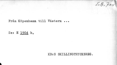 //// Från Köpenhamn till Västern ... //// : //// Se: E 1904 h, //// KB:S SKILLINGTRYCKSREG. //// ä å ////