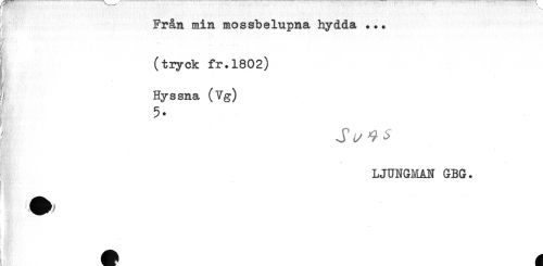 //// : - ' , . * ' ' ... //// Från min mossbelupna hydda ... //// ' ''' ' ' ' ' ' ' ' //// , (tiyck fr.1802) //// j Hyssna (Vg) //// c //// LJUNGIÉAN GBG. //// ! ////