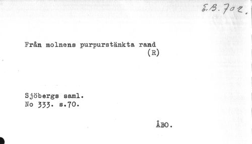 //// Från molnens purpurstänkta rand //// (R) //// Sjöbergs saml. //// No 333. s.70. //// i //// ÅBO. ////