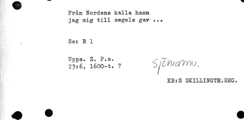 //// Från Nordens kalla hamn //// jag mig till segels gav ..* //// Se: R 1 //// ? //// KB:S SKILUNGTR.REG. //// C(. . ////