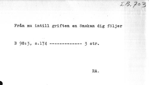 //// Från nu intill griften en önskan dig följer //// B 98:3? s.174----3 str. //// RA. ////
