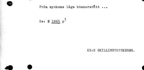 //// t ^^^ //// Från nyckens låga kämnersr&tt ... //// Se: E 1865 P^ //// * //// KB:S SKILLINGTRYCKSREG. //// !i //// } ////