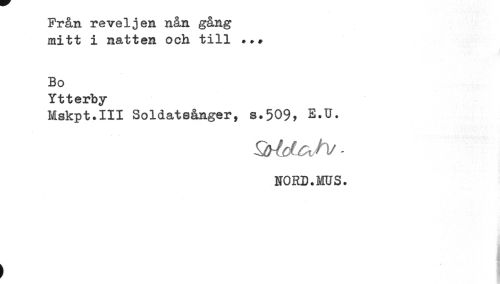 //// Från reveljen nån gång //// mitt i natten och till ... //// Bo //// Ytterby //// Mskpt.III Soldatsånger, s.509, E.U. //// - //// NORD.MUS. ////