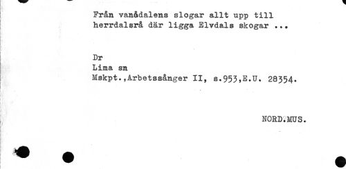 //// Från vanådalens slogar allt upp till //// herrdalsrå där ligga Elvdals skogar ... //// t //// [* //// r //// : //// Dr //// Lima sn //// Mskpt*,Arbetssånger II, s.953,E.U. 28354. //// i vW ' - ! //// ! ' * " " ' . //// i //// t //// ; NORD.MUS. //// * //// ^HH ^ - ////