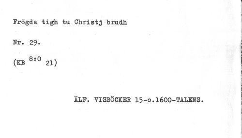 //// Frögda tigh tu Christj brudh //// - //// Nr. 29. //// (KB 21) //// ALF. VISBÖCKER 15-0.I6OO-TALENS. //// j //// 1 //// i ////
