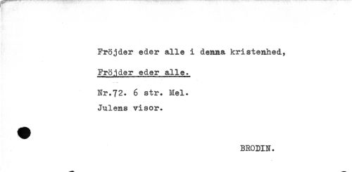 //// Fröjder eder alle i denna kristenhed, //// Fröjder eder alle. //// Nr.72. 6 str. Mel. //// Julens visor. //// BRODIN. ////