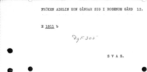 //// f ' ' //// FRÖKEN ADELIN HON GÅNGAR SIG I ROSENDE GÅRD 12. //// E 1811 b //// / j ^ ^ //// I //// S V A S. ////