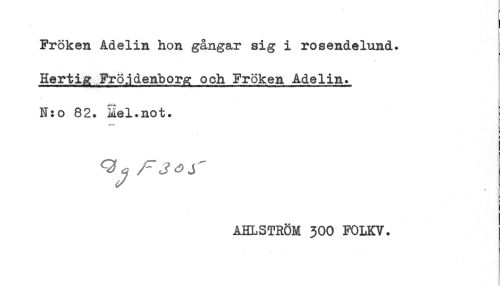 //// Fröken Adelin hon gångar sig i rosendelund. //// Hertig Fröjdenborg och Fröken Adelin. //// i //// N:o 82. Mel.not. //// t"*-** //// AHLSTRÖM 300 FOLKV. ////