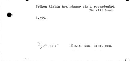 //// I //// t //// Fröken Adelin hon gångar sig i rosendegård //// för allt hvad. //// ' ^ S.355. //// SÖDLING MUS. HIST. MUS. //// ......r!....f......1, ////