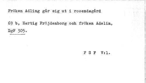 //// Fröken Ädling går sig ut i rosendegård //// 69 b, Hertig Fröjdenborg och fröken Adelin, //// DgF 305. //// F S F V:l. ////