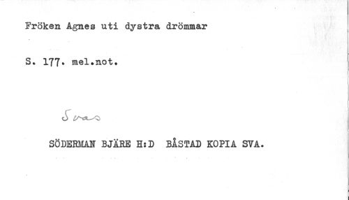 //// Fröken Agnes uti dystra drömmar //// S. 177. mel.not. //// t //// ( //// SÖDER!.!AN BJARE H:D BÅSTAD KOPIA SVA. //// j ////