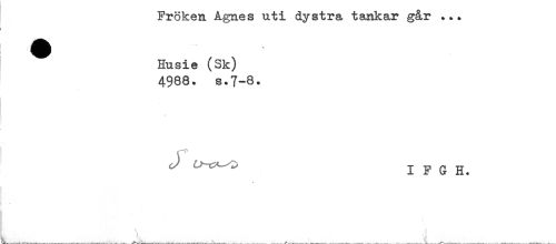 //// Fröken Agnes uti dystra tankar g&r ... //// Husie (Sk) //// 4988. s.7-8. //// J I F G H. //// / \ ^ . - //// . ^ ) f ////