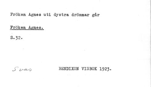 //// Fröken Agnes uti dystra drömmar går //// Fröken A^nes. //// s.32. //// ^ ^^^ BENDIXON VISBOK 1923. ////