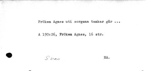 //// Fröken Agnes uti sorgsna tankar går ..* //// A 190:26, Fröken Agnes, 16 str. //// * j> ^ RA- ////