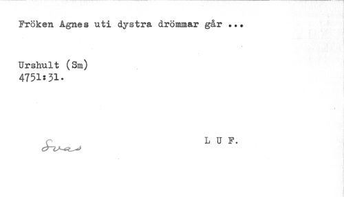 //// Fröken Agnes uti dystra drömmar går ... //// Urshult (Sm) //// 4751:31- //// L U F. ////