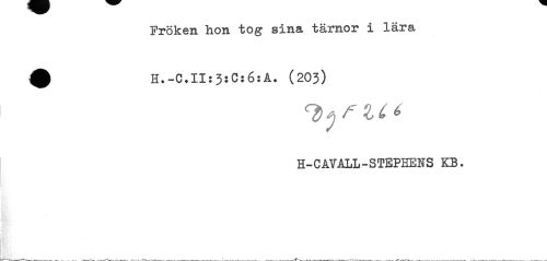 //// Fröken hon tog sina tärnor i lära //// ^ H.-C.II:3:C:6:A. (203) //// H-CAVALL-STEPHENS KB. ////