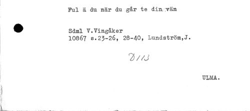 //// Ful ä du nar du går te din .vän //// ^ Sdml V.Vingåker //// 10867 s*23-26, 28-40, Lundström,J. //// ULMA. //// ir //// i //// L. _ ____. ////