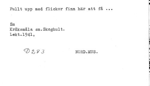 //// Fullt upp med flickor finn här att få ... //// Sm //// Kråksmåla sn.Skoghult. ^ //// Lekt.1941, //// i //// NORD.MUS. //// j //// H //// r* ////