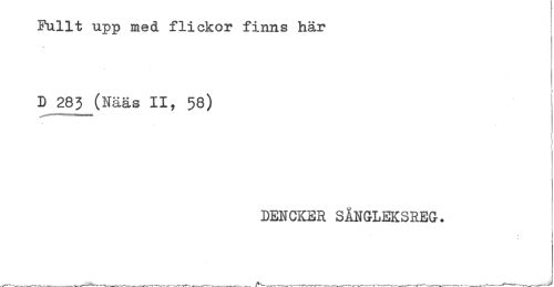 //// Fullt upp med flickor finns här //// D 283^(Nääs II, 58) //// DENCKER SÅNGLEKSREG. ////