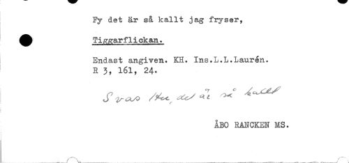 //// Fy det är så kallt jag fryser, //// T i K,?ar f 1 i ck an. //// Endast angiven. KH. Ins.L.L.Laurén. //// ' R 3, 161, 24. //// ÅBO RANCKEN MS. //// * //// i //// r^v__ ____ __ _ ^ __ ////