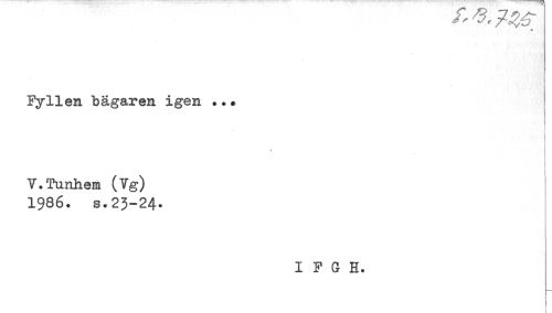 //// Fyllen bägaren igen ... //// V.Tunhem (Vg) //// 1986. s.23-24. //// I F G H. ////