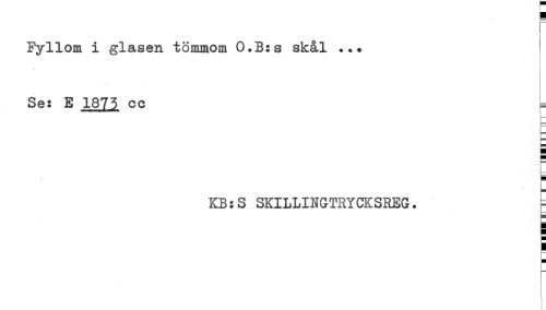 //// Fyllom i glasen tömmom O.B:s skål ... ^ //// . //// Se: E 1875 cc - //// } //// KB:S SKILLINGTRYCKSREG. E ////